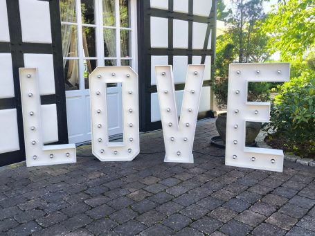 Unsere großen beleuchteten LOVE-Buchstaben setzen romantische Akzente und sind ein beliebter Blickfang für Fotos und Dekoration.
